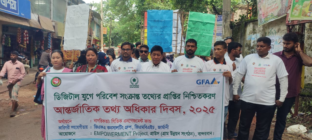 তথ্য অফিস, লামা ও গ্রাউসের যৌথ উদ্যোগে “ডিজিটাল যুগে পরিবেশ সংক্রান্ত তথ্যের প্রাপ্তি নিশ্চিতকরণ” প্রতিপাদ্যকে সামনে রেখে বান্দরবান জেলার নাইক্ষ্যংছড়ি উপজেলায় আন্তর্জাতিক তথ্য অধিকার দিবস উদযাপন করা হয়েছে। এ উপলক্ষ্যে রবিবার সকালে র্যালি শেষে এক আলোচনা সভা অনুষ্ঠিত হয়। র্যালি পরবর্তী আন্তর্জাতিক তথ্য অধিকার দিবস ভিত্তিক আলোচনা সভা হাজী ফিরোজা বেগম স্কুলের হলরুমে অনুষ্ঠিত হয়।