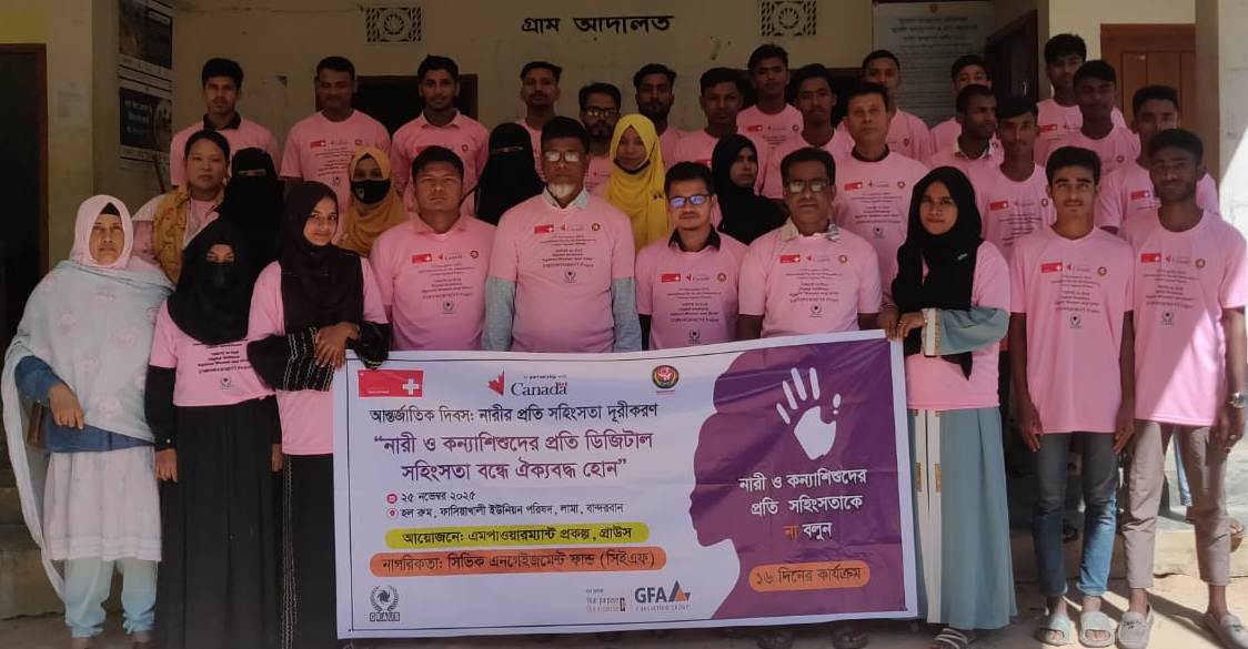 বান্দরবান জেলার লামা উপজেলায় আন্তর্জাতিক দিবস: ‘নারীর প্রতি সহিংসতা দূরীকরণ’ শীর্ষক আলোচনা সভা দুর্গম পাহাড়ি ফাঁসিয়াখালী ইউনিয়ন পরিষদ মিলনায়তনে অনুষ্ঠিত হয়েছে। এ উপলক্ষ্যে মঙ্গলবার দুপুরে ‘নারী ও কন্যাশিশুদের প্রতি ডিজিটাল সহিংসতা বন্ধে ঐক্যবদ্ধ হোন’-এ শ্লোগানকে প্রতিপাদ্য করে এক বাইসাইকেল র‌্যালি অনুষ্ঠিত হয়।