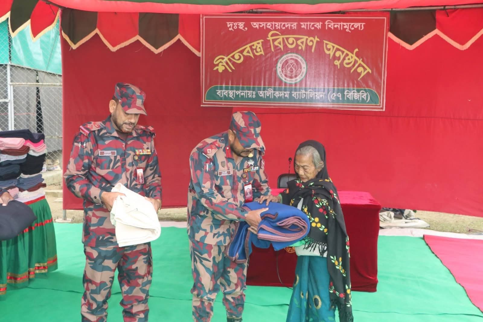 আলীকদম প্রতিনিধি। বান্দরবান জেলার আলীকদম ও থানচি উপজেলার স্থানীয় অসহায়, দুস্থ ও শীতার্ত পাহাড়ি ক্ষুদ্র নৃ-গোষ্ঠী এবং বাঙালি পরিবারের মাঝে শীতবস্ত্র কম্বল বিতরণ করেছে বিজিবি। মঙ্গলবার (৬ জানুয়ারি) আলীকদম উপজেলার
